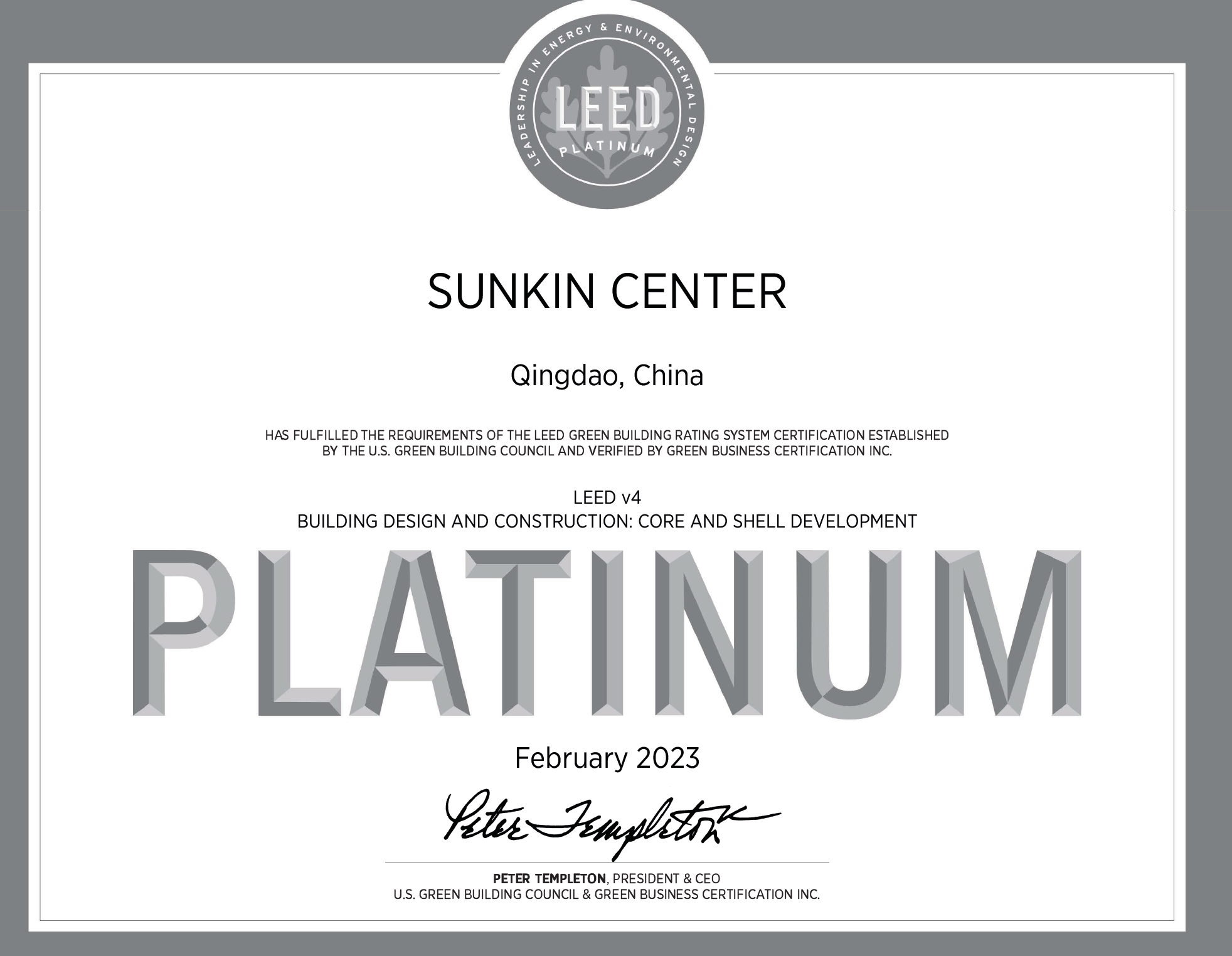 • 鑫江中心榮獲綠色建筑“奧斯卡”LEED鉑金級認證